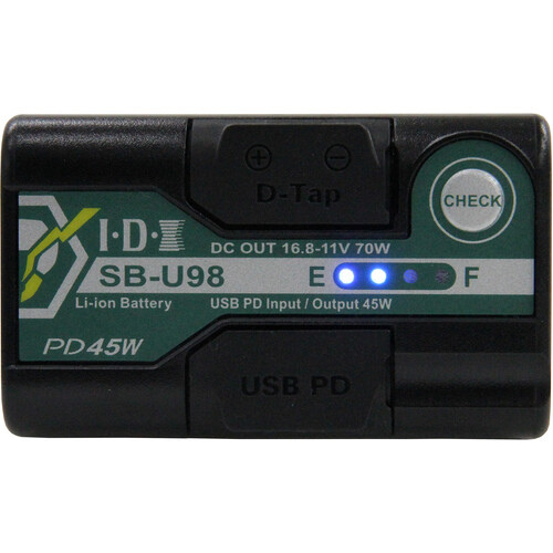 Beyond camera power, today’s rigs lean on USB‑powered devices—field monitors, wireless video, tablets and comms. The SB‑U98PD adds USB‑C Power Delivery (PD) I/O (up to 45W profiles) and a D‑Tap output (up to 70W), allowing one battery to power your camera and critical accessories or top up devices directly via USB‑C.